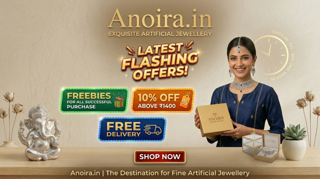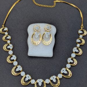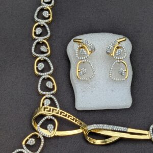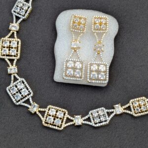 Shop Anoira dual tone American Diamond necklace set for women. Gold & silver CZ geometric necklace with earrings—perfect for party, wedding & festive wear.