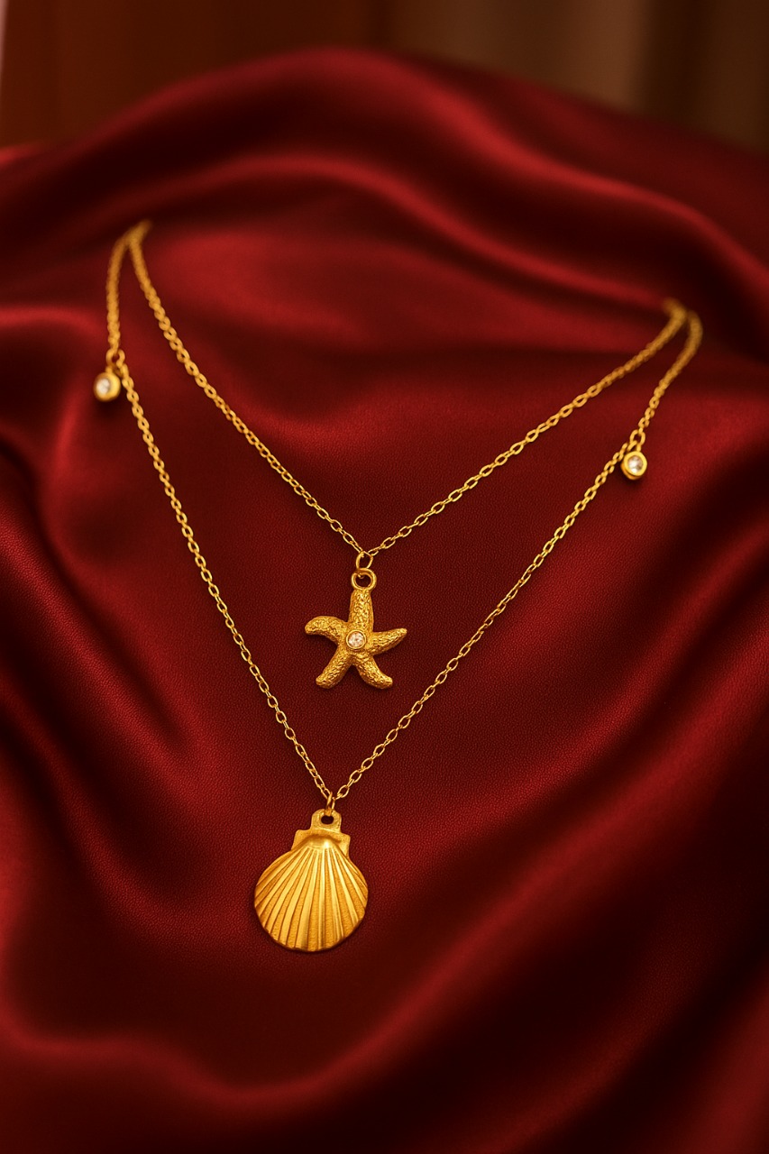 Designed with versatility in mind, this necklace pairs beautifully with dresses, swimwear, tops, and evening outfits. It seamlessly complements minimalist wardrobes as well as bold, expressive fashion styles. The combination of symbolic pendants — the starfish representing resilience and inspiration, and the shell symbolizing femininity and protection — adds emotional meaning to this accessory, making it perfect for gifting.