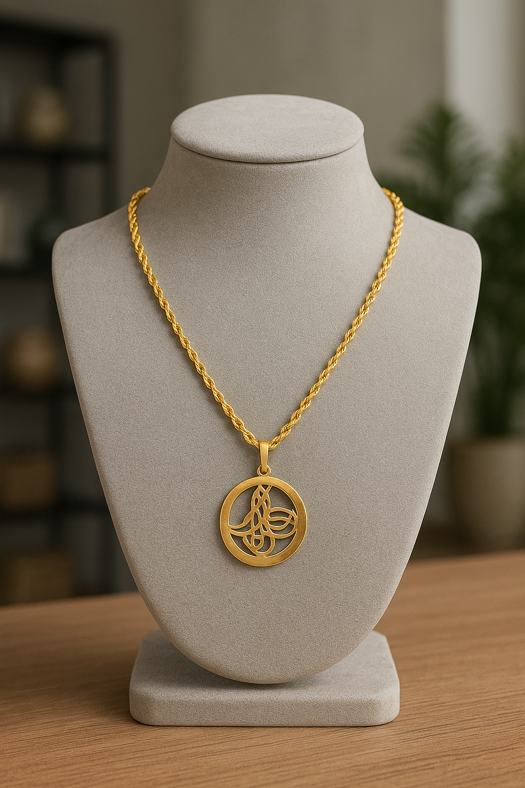 Introducing the Anoira Anti-Tarnish Gold Necklace, a stunning fusion of modern elegance and timeless craftsmanship. This exquisite piece features a premium gold-plated rope chain paired with a beautifully crafted round artistic pendant, making it a standout accessory for women who value luxury, durability, and meaningful design. Engineered with advanced anti-tarnish coating technology, this necklace retains its brilliant sheen, ensuring a long-lasting shine that enhances your everyday style as well as your special-occasion outfits.