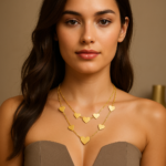 The top layer sits slightly shorter, beautifully framing the collarbone, while the longer layer falls elegantly below it, enhancing neck definition and adding dimension. This positioning makes it the ideal layered chain necklace for women who enjoy stylish stacking without tangling or heavy layering. The symmetry and placement of each heart charm ensure a visually balanced and chic look from every angle.