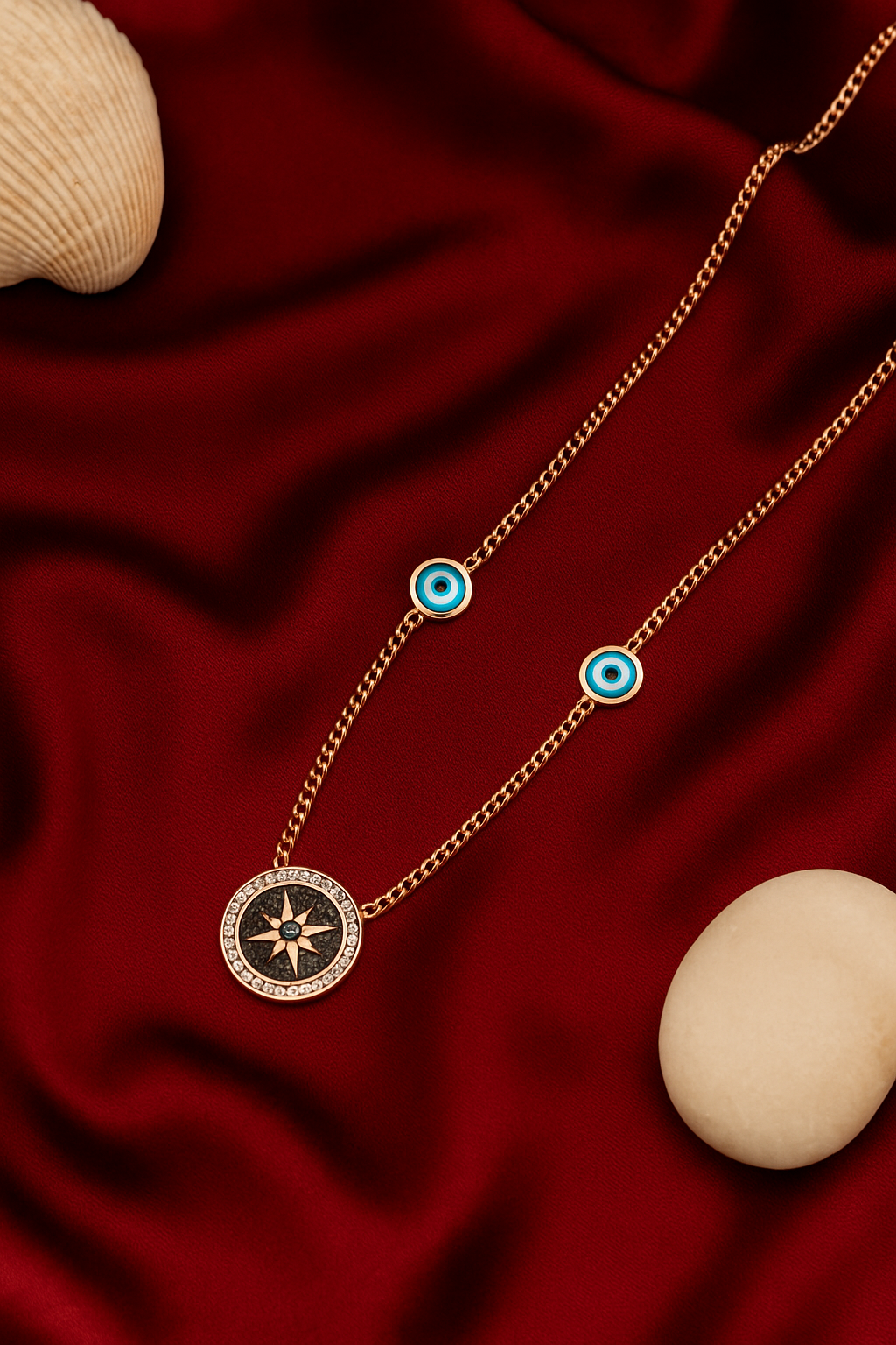 Anti-tarnish gold plated necklace Two-tone ivory & burgundy resin pendant Minimalist pebble design pendant...