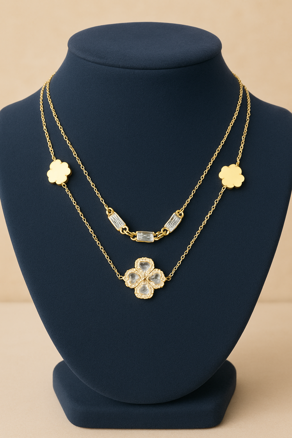 Anti-tarnish rose gold layered necklace Dainty herringbone and station chain design Floral charm necklace...