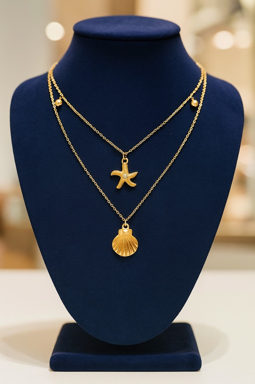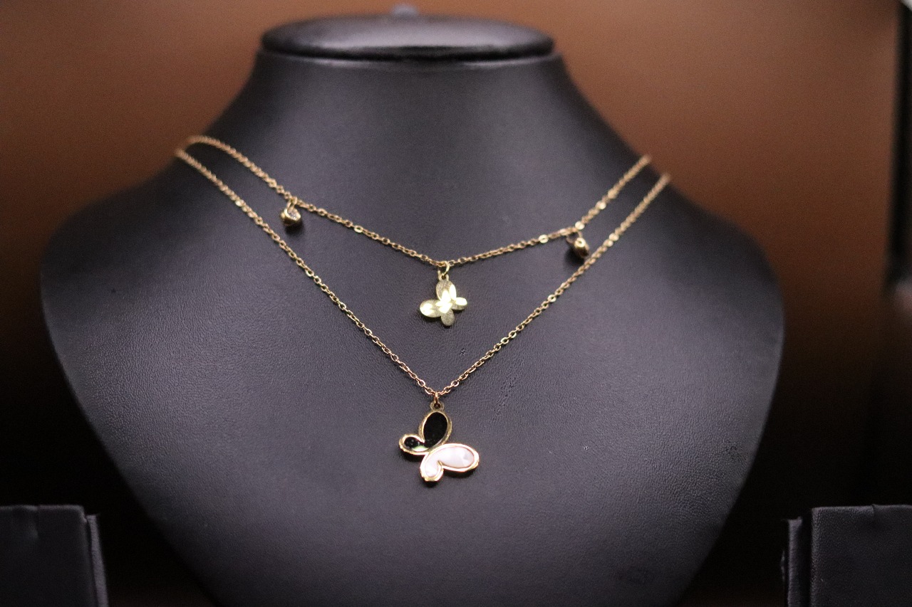 Anti-tarnish gold plated necklace Dainty layered double-chain design Enamel butterfly pendant Lightweight...
