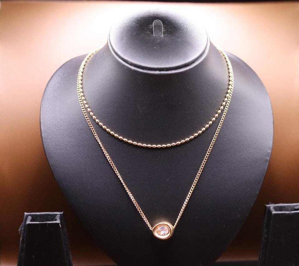 Anti-tarnish gold layered necklace Dual pendant: crystal ball & enamel floral charm Waterproof, sweat-proof,...