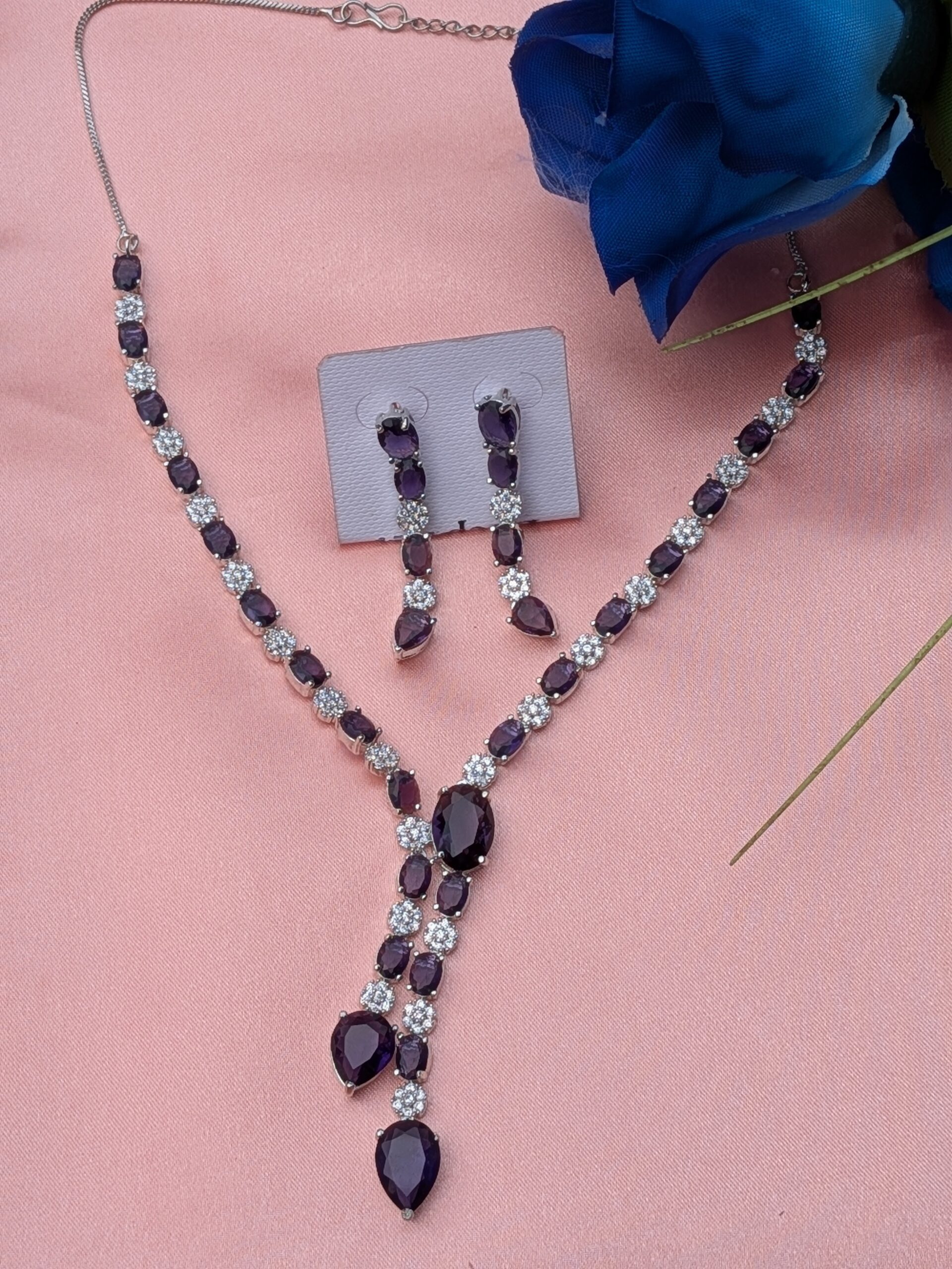 Shop American diamond necklace set with purple stones, CZ jewellery, bridal & party wear AD necklace...